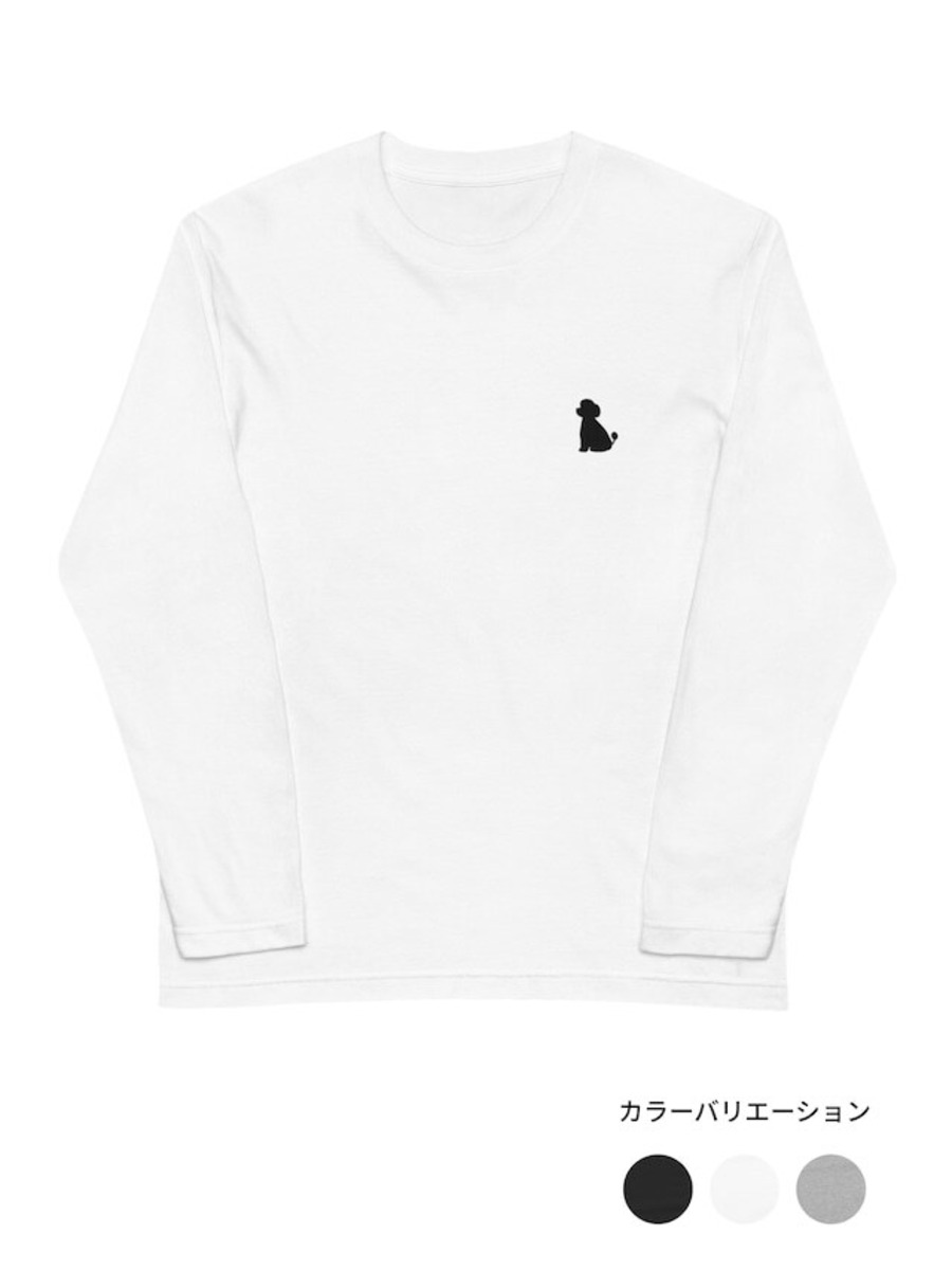 おすわりトイプードル_ブラック刺繍 長袖Tシャツ[P0046]